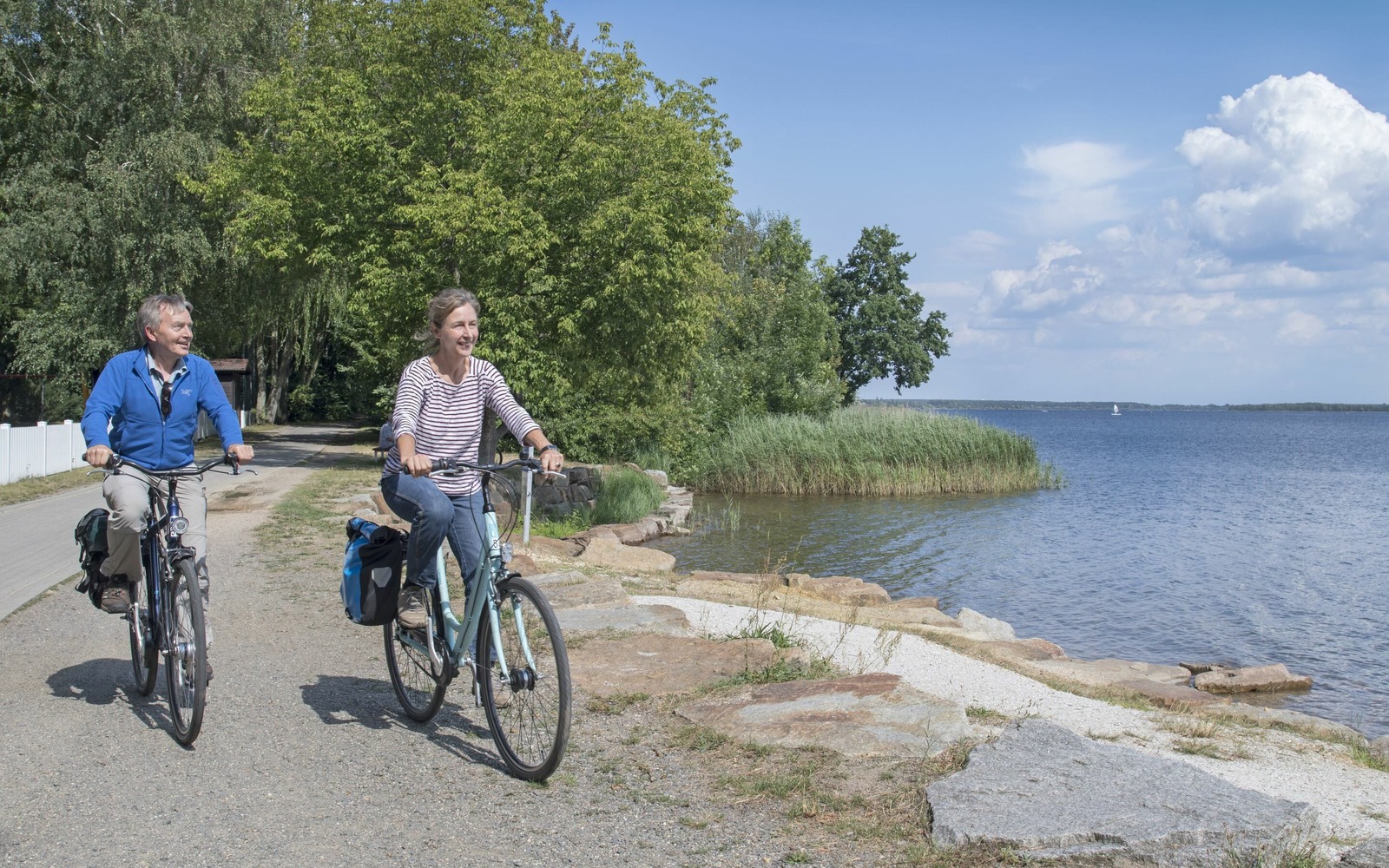 Trasa krajem jezer začíná v městském přístavu v Senftenbergu. Odtamtud pokračuje přes výšinu Reppister do Großräschenu, k centru IBA-Terrassen. V bezprostřední blízkosti se nachází výšina Victoriahöhe. Odtud je krásný výhled na přístav a jezero Großräschen. Trasa pak pokračuje podél Sedlického a Partwitzského jezera. Pláž u jezera Partwitzer See zve ke krátkému odpočinku a koupání. Trasa pokračuje přes vesnice Bluno a Sabrodt až k jezeru Spreetaler See. Když už tam budete, stojí za to navštívit Terra Novu, hospodářskou usedlost v krajině po těžbě s farmou poníků a chovem divokých zvířat.
