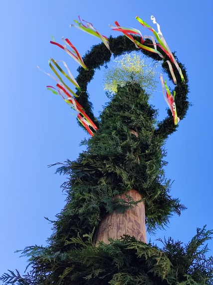 traditionelles Maibaum schmücken und aufstellen auf dem Spremberger Marktplatz
