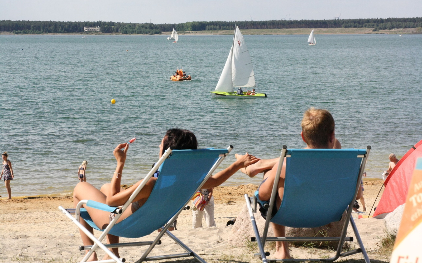 Lake Geierswalder See is located in the middle of the navigable Lusatian Lake District. A perfect day by the lake is guaranteed for all keen swimmers on Lake Geierswalder See: bathing and surfing beach, lakeside bar, various snack bars and a large chargeable parking area. There is local boat rental for pedal boats, canoes, Canadian canoes and Stand-Up-Paddling, as well as a surf and sailing school. This is also where the passenger boat stops, which operates scheduled services between Lake Geierswalder See and Lake Senftenberger See. There are camping and camper van sites in the immediate vicinity. The bathing area is guarded by German Red Cross (DRK) lifeguards during the summer months at weekends and on public holidays between 11 a.m. and 7 p.m.