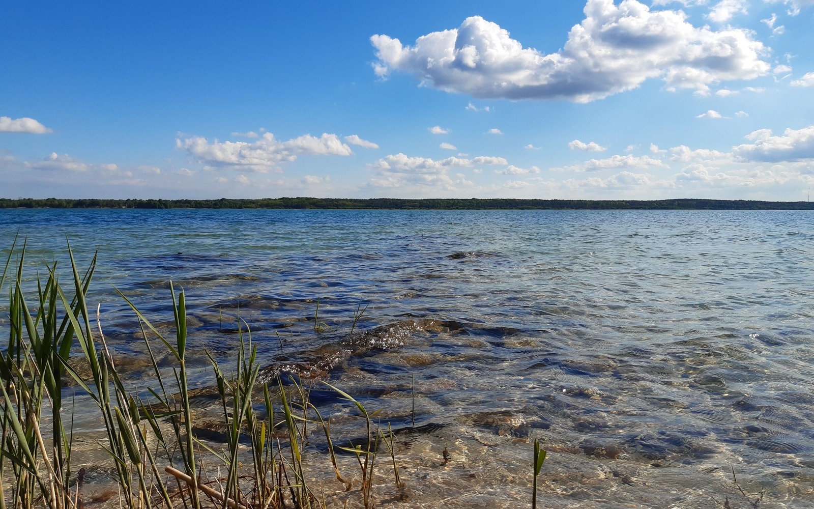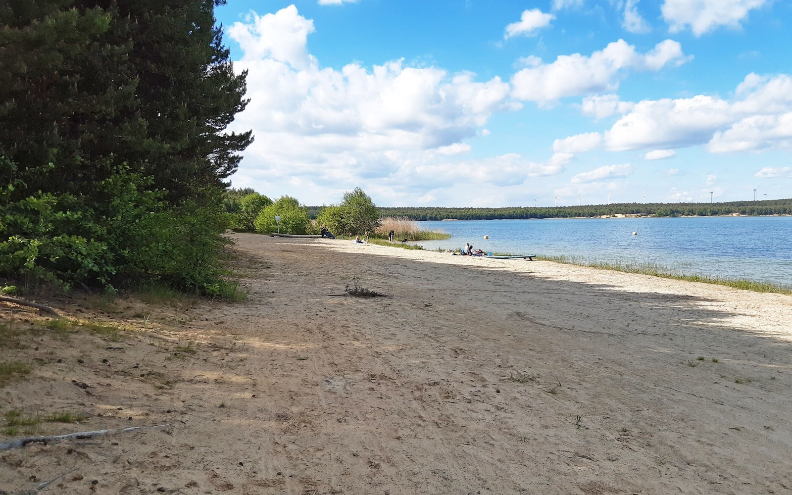 For the first time in 2017, the city has been granted interim use for bathing from mid-May until October each year. Thus, it is possible to use about 120m of almost natural beach, once 450m of beach length is planned. The approximately 10m wide strip of sand is maintained once a year and serves as a beach and sunbathing area. Car parking spaces are available at a relatively short distance from the bathing beach on the western shore.