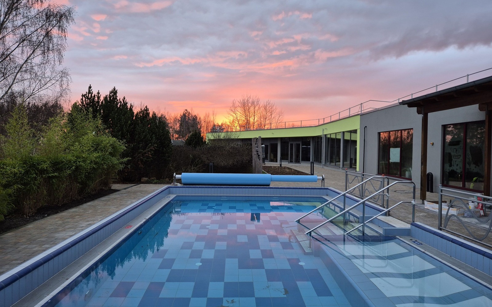 Saunagarten mit Goldfischteich im Lausitzbad Hoyerswerda, Foto: Gernot Menzel